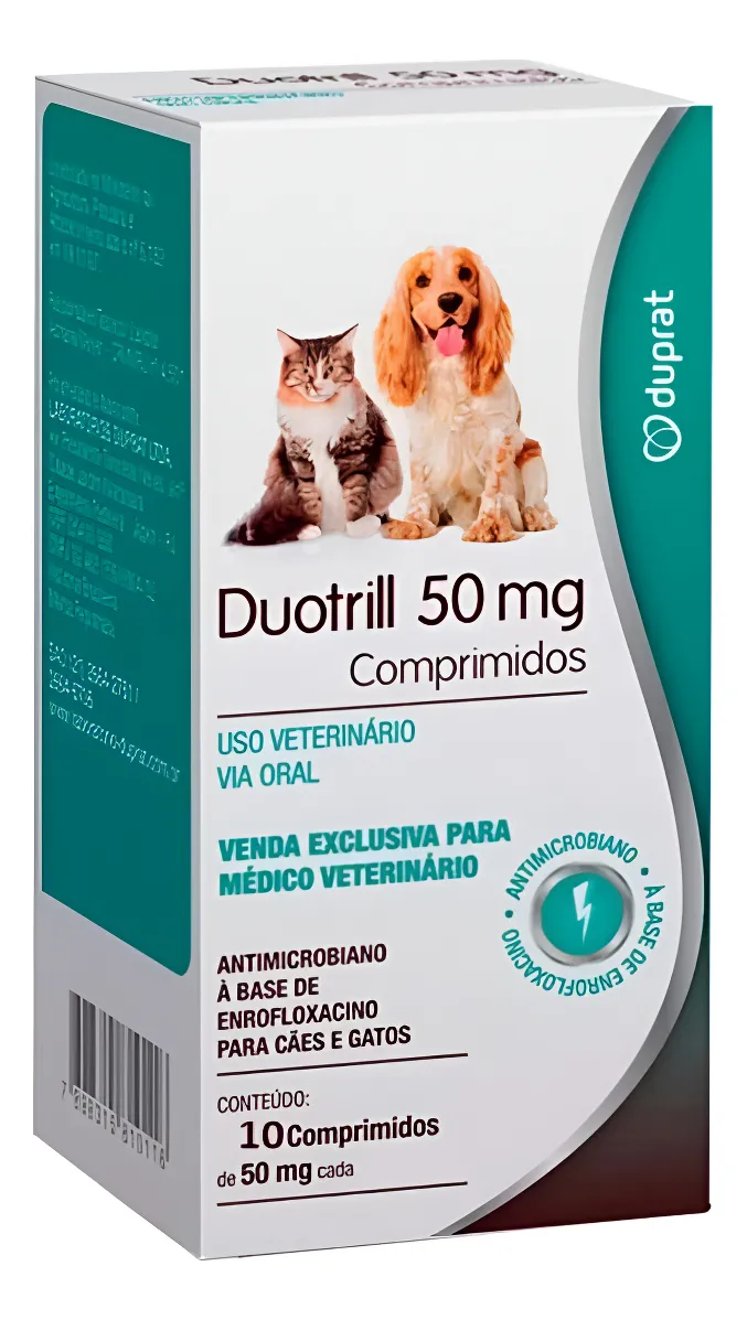 ODuotril(ou Duotrill) é ummedicamento antimicrobiano (antibiótico) de uso veterinário, indicado para o tratamento de infecções bacterianas emcães e gatos. Seu princípio ativo é aenrofloxacina, um antibiótico bactericida de amplo espectro da classe das quinolonas.
