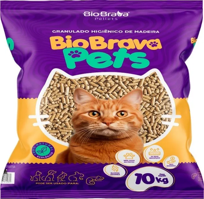 O granulado higiênico Biobrava Pets, foi fabricado exclusivamente para que seu pet tenha qualidade de vida, higiene e saúde. É um produto 100% natural, atóxico e não prejudica seu animal, e nem o meio ambiente. Não suja as patas, e possui 5 x mais absorção. Por possuir PH neutro, elimina odores.